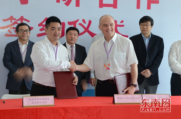 与此同时,由石狮市政府主持,石狮市人事局与我校阳光学者、“_”入选者俄罗斯自然科学院与工程院双院院士亚历山大·涅夫斯基就产学研合作达成相关协议。双方就今后产学研合作、人才培养及产业化升级相关事宜达成了一致。该项目的签订,标志着我校助推石狮市产业升级、促进石狮纺织企业转型的开始。人事局廖局长致以热情洋溢的讲话,期盼着我校与石狮市进一步加强合作和交流,在学习借鉴中实现共同发展和进步。