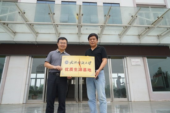 7.我院与新野一中、襄阳二中签定共建优质生源基地协议书并授予“武汉纺织大学优质生源基地”牌匾。