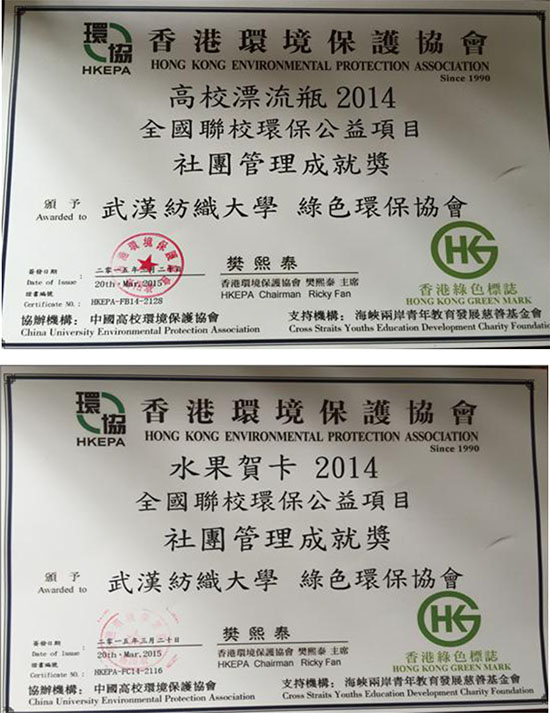 (纺大绿协先后被评为感动江城十大人物和洪山区高校优秀社团)
