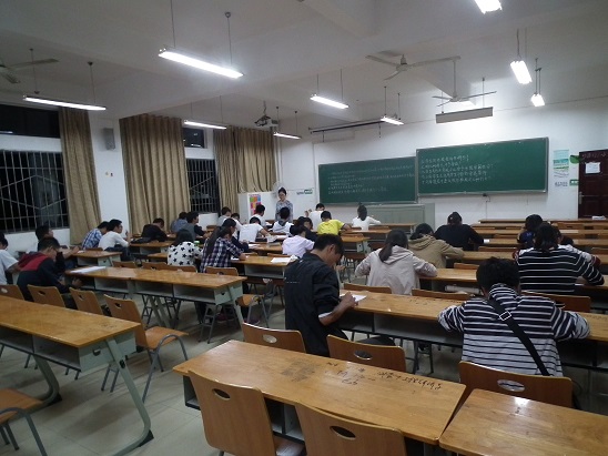 为了迎接十八届四中全会的召开,深入理解“法治”的概念,在学习生活中严格树立规则意识,10月19日晚,我院全体新生在六栋教学楼举行大学生规章制度汇编考试。
