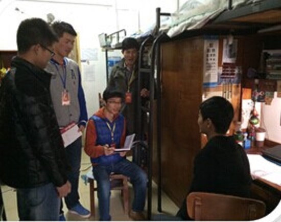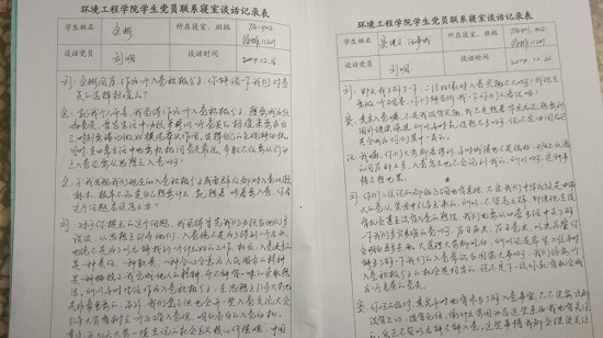 通过志愿报名的方式,我院每一个学生党员及入党积极分子至少联系1到2间学生寝室,每周至少走访1次所联系的寝室,每个月至少进行1次有意义的活动,并将走访情况登记在《我院学生党员联系寝室谈话记录本》内,定期向党支部汇报联系寝室的情况。