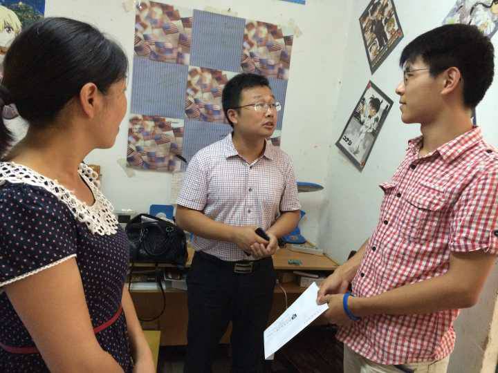 8月3日下午,我院院长夏东升来到了2015级新生杜宇航家,详细了解他的生活和学习情况,并送去了慰问金。我院从7月20日就在网上开展了迎新工作。通过QQ群,新生和学院领导、专业老师、辅导员在群里亲密互动。学院还通过电话与每名录取的学生取得了联系,告知新生群号。当学院得知杜宇航高考529分,并立志从事环境保护工作时,学院决定到其家里家访。