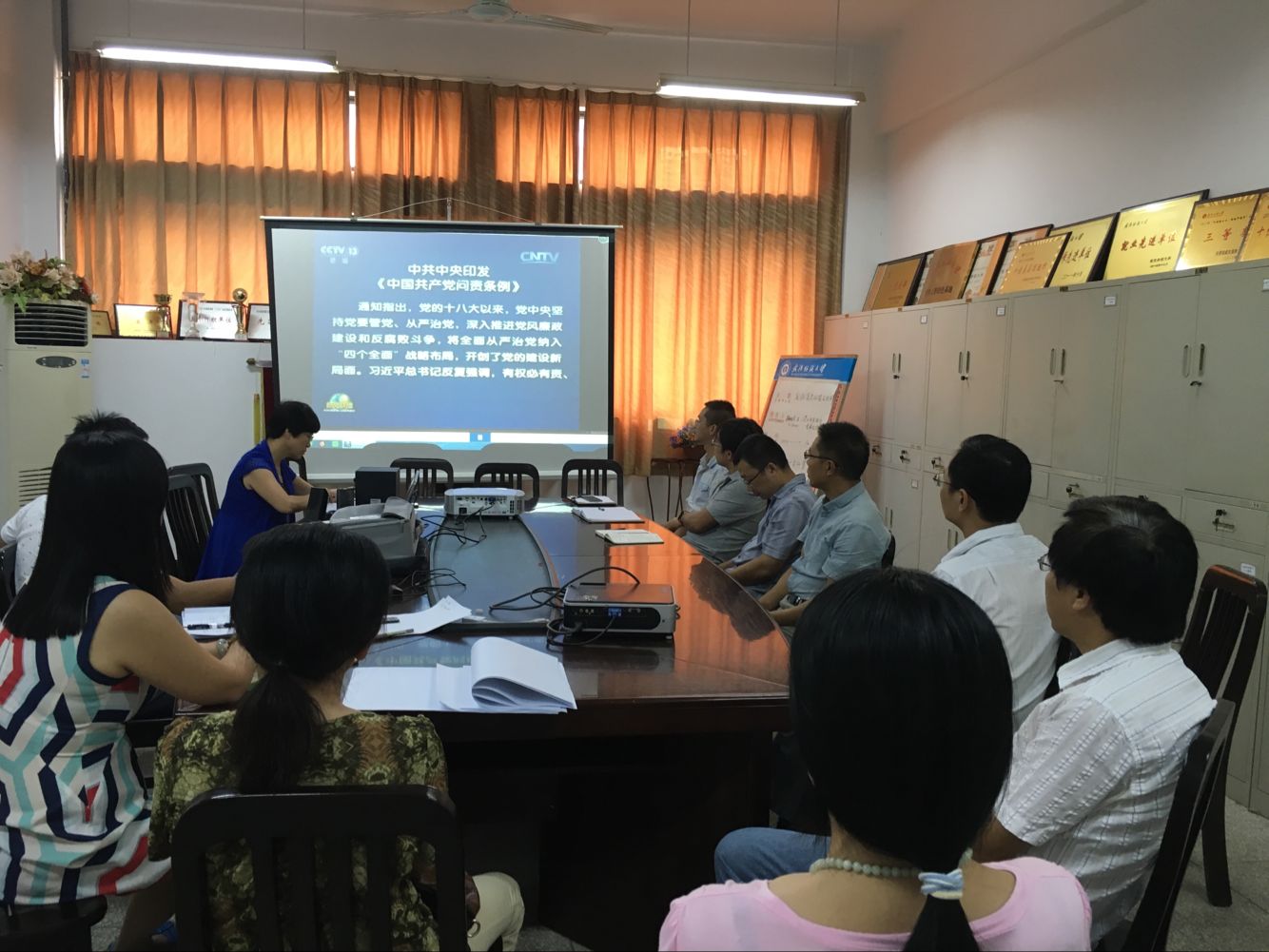 9月8日,在理工楼3楼党员活动室召开了我院党委中心组扩大会议,会上学习传达了习近平总书记在庆祝中国共产党成立95周年大会上的讲话精神。学院党委中心组成员、党支部书记参加了会议,会议由分党委书记谢晓萍同志主持。