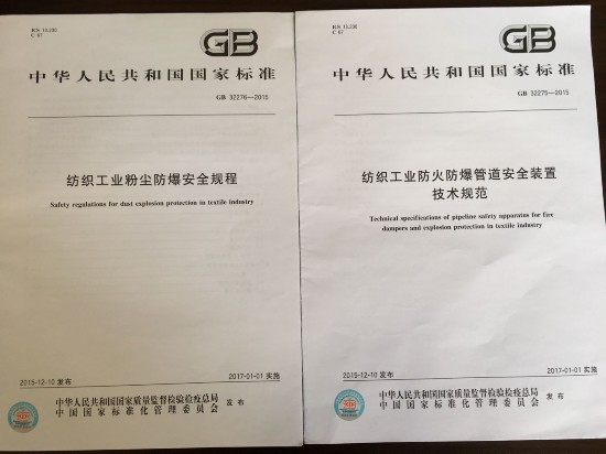 近日,由我校我院石建中副教授主持起草的《纺织工业粉尘防爆安全规程》(GB 32276-2015)和《纺织工业防火防爆管道安全装置技术规范》(GB 32275-2015)两部国家标准已由国家质量监督检验检疫总局和国家标准化管理委员会正式发布,将于2017年1月1日正式实施。