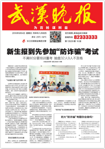 (武汉晚报报道我院防诈骗考试)