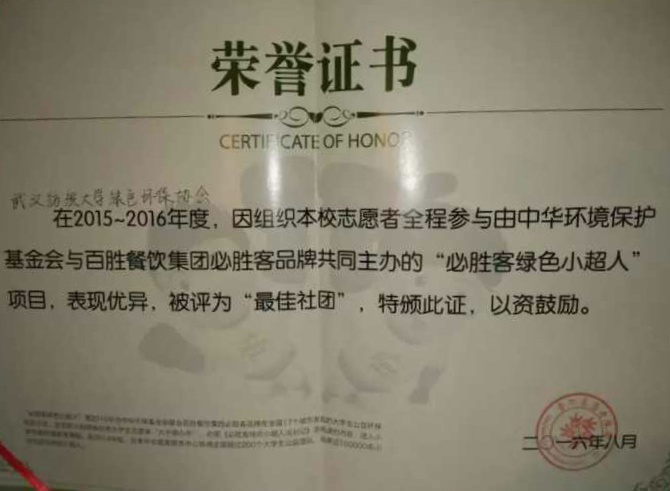 (绿协获必胜客绿色小超人“最佳社团”)