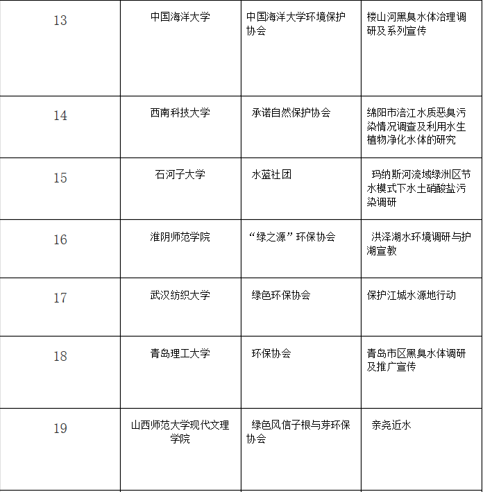 绿色环保协会“保护江城水源地行动”成功中标2016年TOTO水环境保护和节水项目,成为此次竞标成功的全国29家大学生环保社团中的一支,自2015年绿色环保协会开展“武汉百湖湿地行”以来,绿色环保协会连续两年成功入选TOTO水环境基金会项目。