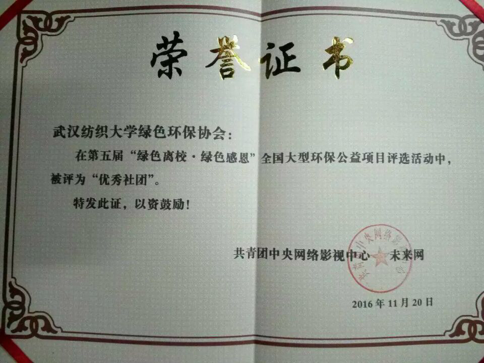 (绿协获共青团中央绿色离校优秀社团)