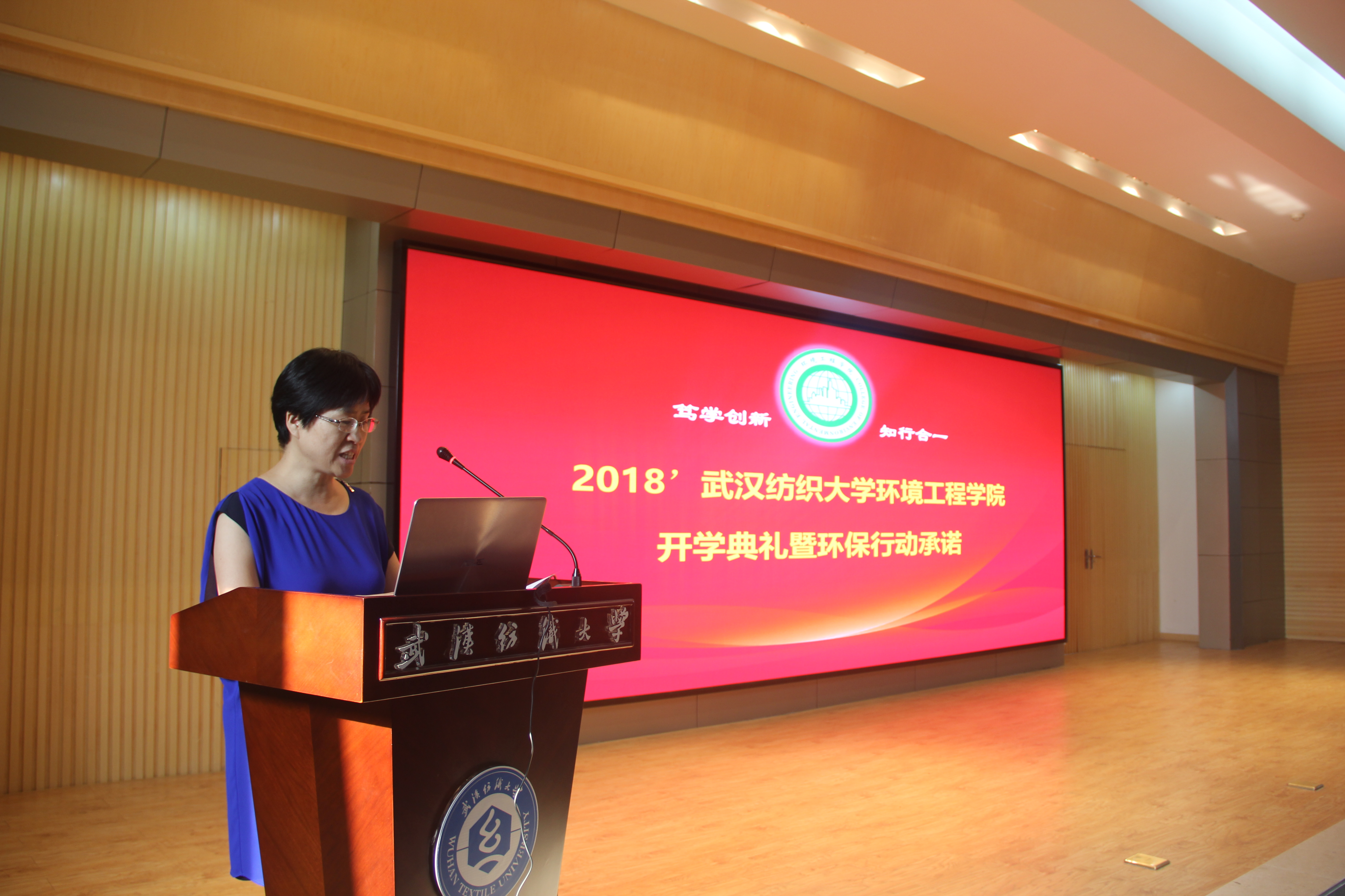 典礼上,院长夏东升教授借此机会,与在座人员分享了环保“微讲座”。他以《以实现绿水青山为已任做一个合格的时代践行者》为题,通过对传统文化的科学基因、当代中国竞争力与骄傲、能源与环境污染问题及生态文明建设国家战略等的全面介绍,引出谁来担当生态文明建设使命的命题。他勉励同学们,要充分利用学校提供的优良学习条件,学好本领,做一个生态中国的践行者,为建设美丽中国贡献力量。