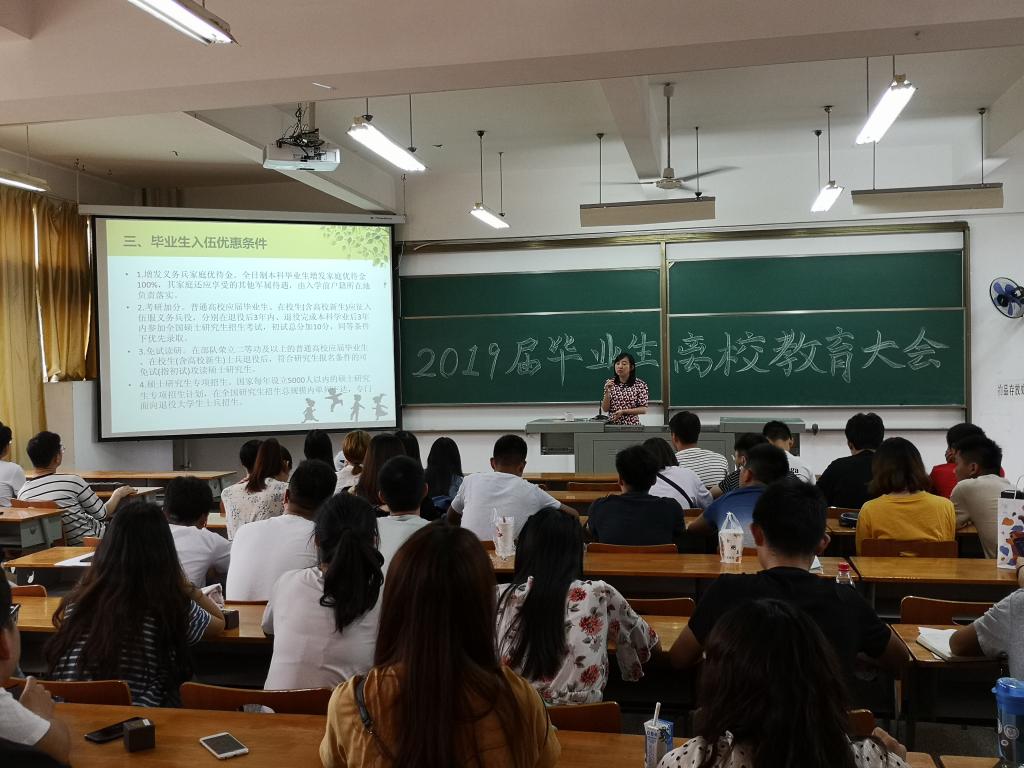 座谈会之前,学院还举行了毕业生离校教育大会,开展了最后一次“点名”。副书记刘园美以“理想信念、感恩诚信”为主题,引导毕业生进一步熟知国情,了解社会发展,为实现国家富强、民族复兴、人民幸福的伟大“中国梦”而不懈奋斗,并对毕业生党员提出了要求与期望;辅导员姚瑶就毕业生离校安排、征兵入伍政策、档案去向等相关事宜作了介绍。