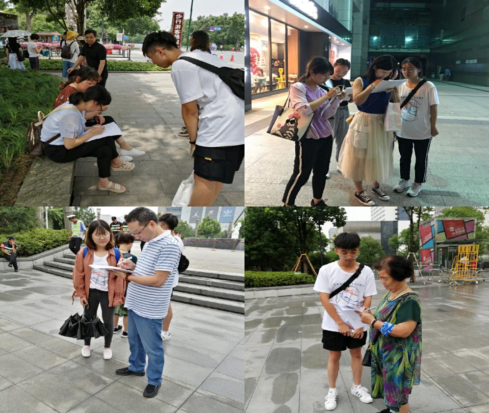 7月10-11日,实践队员们分别在西湖文化广场、武林广场、蒋村街道等地展开了问卷调查,了解市民对“河湖长“制度的了解情况及意见。在问卷调查中,实践队员们发现杭州市对于“河湖长制”的宣传力度很大,在社区多有“五水共治”和“河长制”的宣传及海报,还有主题文化汇演等宣传普及渠道,访谈的市民也对河湖长制度比较了解,市民们也纷纷表示“河湖长”制度实施后,城市环境变得更好,大家都支持“河湖长制度”继续实施下去。