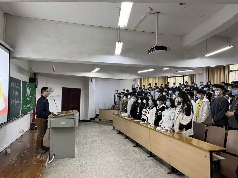 夏东升教授以《实践出真知:在科研实践中逐梦青春》为主题,分享了自己“步履不停,走技术工程化之路”的个人发展经历,从“本科生导师制”、“专业社会实践”两方面向新生同学们介绍了学校、学院的学科发展、研究重点,推介了最新技术和成果,鼓励同学们积极加入实验室,借助实验室平台深入了解专业知识,提升动手实践何独立思考的能力,并在专业社会实践中充实大学生活,服务社会。他还以中国大学生年度人物入围奖获得者左诗语、全国大学生小平科技创新团队(绿色环保协会水污染治理团队)的成长发展为例,勉励同学们明确目标、积极参与活动,在实践中出真知。