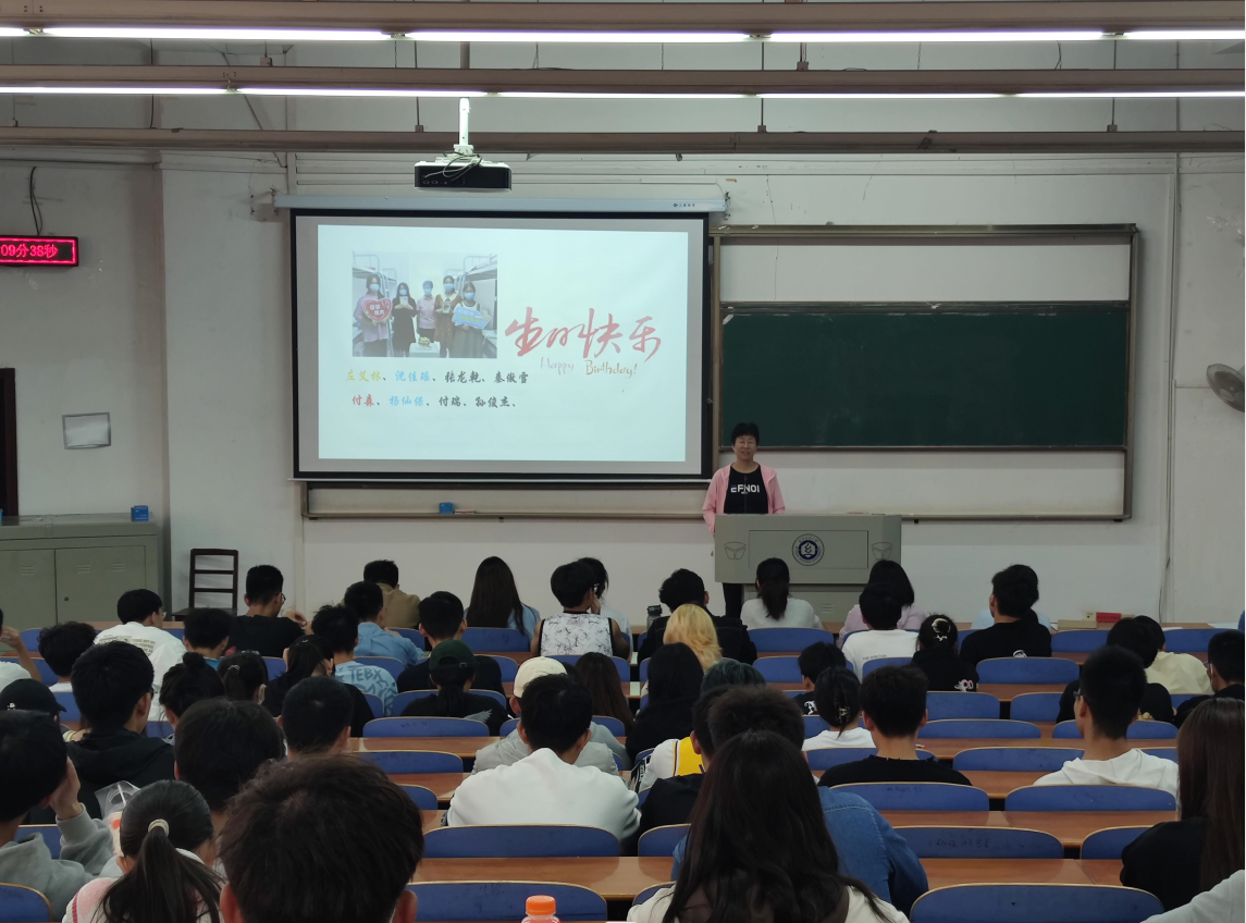 会议伊始,学院党委书记谢晓萍、院长潘飞、副院长蔡亚君、党委副书记姚瑶、各班班主任老师、全体新生,一起为10月份生日的10名新生过集体生日,师生共唱生日歌,送上成人礼。环境12206班沈佳瑶说道:“没想到学院和老师们会以这样的方式来给我们过生日,很意外更感动,以后我也会努力去给周围的人带去温暖和感动!”