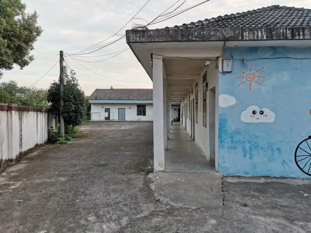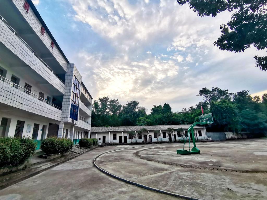 整个王要小学由院墙围了起来,由于年久失修,墙壁早已斑驳陆离。进入校园,一栋三层的教学楼映入眼帘,“文明修身,奋发成才”八个大字十分醒目。楼前的水泥篮球场比较老旧,几乎占满了整个操场,多余的场地只能容下一根旗杆和三张乒乓球台。教学楼前低矮的小平房,像是上世纪八十年代的风格,屋顶盖着石棉瓦、墙角长满了青苔,早已废弃不用。而我们驻扎的大本营就在教学楼的后面,同样也是一排低矮的平房,平时用作学生食堂和宿舍。