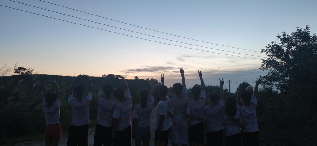 一群孩子在操场晨练,在阳光的照耀下显得更加活泼。不知不觉,田野营也接近尾声。我们一起为结营舞蹈准备着,孩子们认真跳舞的样子,是那样的朝气蓬勃,我很享受和他们在一起的时光,忘记了所有烦心事,陪伴他们的时间越来越少,我想做的就是珍惜当下的每一分钟。