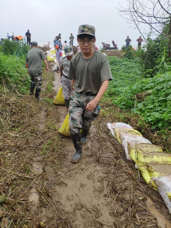 他们到来给当地居民吃了一颗定心丸。面对险情,容不得半点耽搁,周帆放下行李,直奔江堤,攥紧双拳,迅速投入了战斗。铁锹与沙土的碰撞声,挖掘机发出的轰隆声,货轮驶过的鸣笛声……在夜幕下汇聚成一首催人奋进的战歌,忘记了疲劳、忘记了饥饿,和其他民兵一起,从晚上8点到凌晨两点,连续作业六个小时,将数百米长的堤坝用沙袋增高了足足一米,险情得以解除。