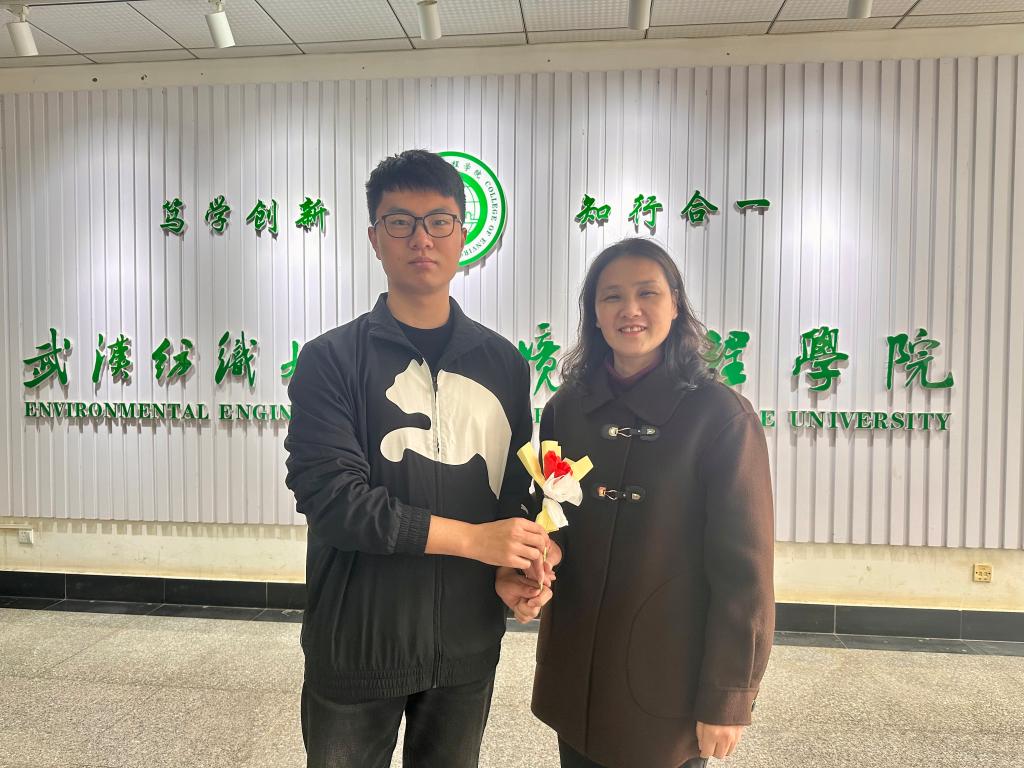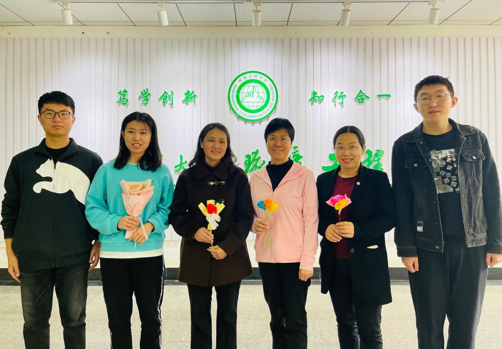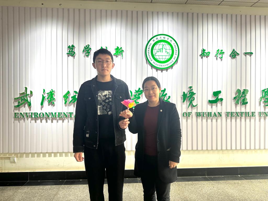 施银桃老师是学院给水排水工程专业老师,获2022年度“最美教师”荣誉称号,她20年如一日,深耕专业教学一线,潜心育人,严慈相济,关注学生成长,深受学生爱戴,培养了一批又一批优秀的毕业生。正值女神节来临,给排水11902班王一凡同学一直以来在施老师的指导下进行专业学习、实习实验和考研复习,他一早就来到学院大厅等待施老师,为她送上自己亲手做的花朵。