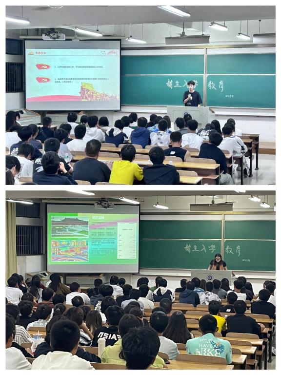 9月25日晚,学院在崇礼楼110、111教室分别对23级新生进行了党的知识和入团启蒙教育,优秀学生代表陈董新宇、谢雨欣分别就中国共产党的党史、中国共产主义青年团的团史、大学生为什么要积极入党入团、如何入党、如何入团等方面进行了详细介绍,引导新生端正入党、入团动机。