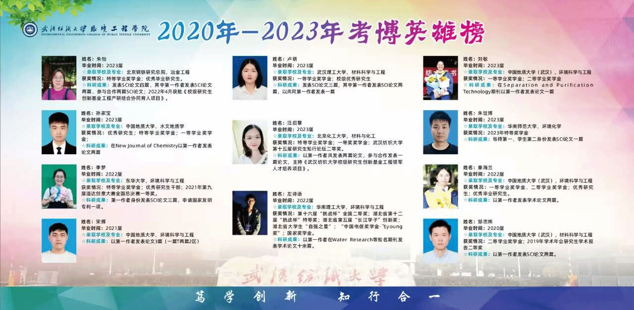 围绕学生发展开展研究,论坛、沙龙、实践报告会实现全覆盖,立项湖北省高校学生工作品牌4项,协同育人水平不断提升;建设“学生兴趣特长库”,分类育人成效显著,考研报考率逐年提升,博士研究生录取率稳居学校前列,20级本科生丁艺琛被西湖大学录取为直博生,科创竞赛经历被《光明日报》《中国教育报》《楚天都市报》等报道7篇。