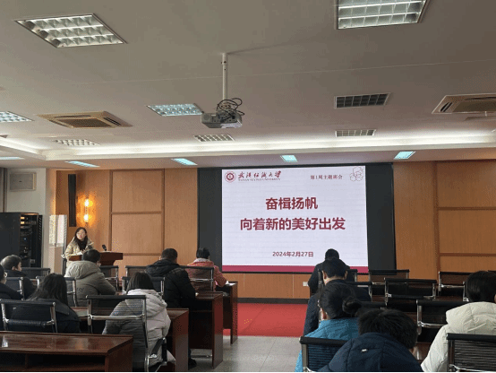 姚瑶通报了学校春季开学工作安排和要求,强调了安全教育、心理健康、毕业生就业、防范电信诈骗等重点工作,建议老师们根据不同年级学生培养侧重点有针对性地开展工作,并做了“奋楫扬帆 向着新的美好出发”主题班会备课示范,回顾了国家、湖北省和学校、学院过去一年的成绩,阐释了“美好纺大”愿景的实现路径,以师生开展专业社会实践、“湖北向上向善好青年”典型事迹为例总结了学院育人经验。