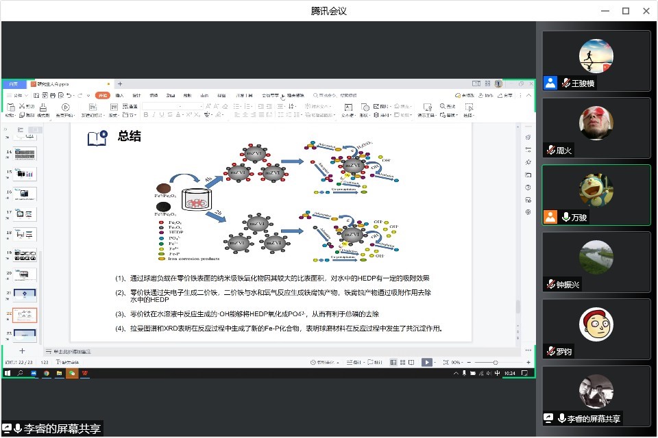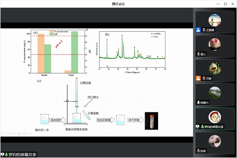 罗钧同学汇报了利用CP@ATP-Fe(II)工艺去除水中的高浓度磷酸盐的研究工作。
