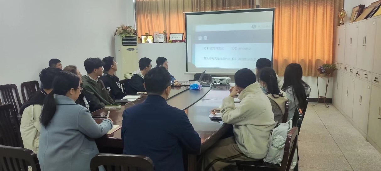 陈旭同学报告了其对腐败希瓦氏菌4H通过荧光定量PCR分析和抗铬相关基因的异源表达对其去铬机制的研究进展。杨建伟同学采用锯末生物负载纳米零价铁(NZVI@SB)克服了纳米零价铁原有的易团聚,稳定性差的问题。同时对NZVI@SB材料进行了SEM、XRD、FTIR 表征,证明了纳米零价铁能够比较稳定地负载在锯末生物炭。用该材料对典型重金属镉污染地下水进行修复,考察了不同投加量、pHCd(Ⅱ)浓度和反应温度等条件下Cd(Ⅱ)的去除效率。周淑红同学介绍其在生物沥滤-热解联用制备纳米零价铁降解重金属方面做的工作,研究了吸附剂投加量、染料初始浓度、反应温度、摇床转速对染料去除效果的影响,利用XRD、FT-IR和BET对PBC进行观察,并进行了吸附动力学模型和等温吸附模型拟合。