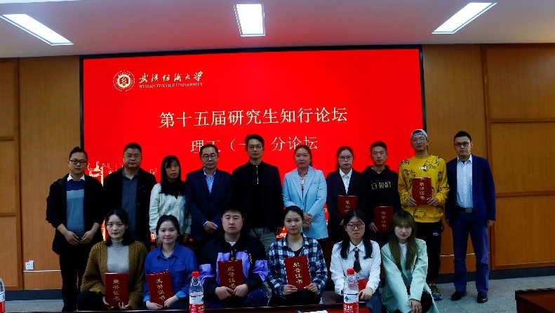 4月27日下午1点,武汉纺织大学第十五届研究生知行论坛理工(一)分论坛于6号教学楼310室圆满举行。本次论坛由我院承办,潘飞教授作为主持人,王腾副教授,裴轩瑗博士,李强副教授带领靳瑞霞,李沙沙,王欢等研究生负责现场工作,“全员参与”充分体现了我院对研究生培养工作的重视。参加本次论坛的研究生共计20人,其中18名本校研究生,分别来自技术研究生院、国家重点实验室、我院、纺织学院、材料学院及化工学院,更有2位来自于兄弟院校武汉轻工大学的学生参于。本次活动的评委由材料学院殷先泽教授,化工学院李晓霞教授,国重的刘学琴教授,纺织学院肖杏芳副教授,技术研究院武艺副教授担纲。