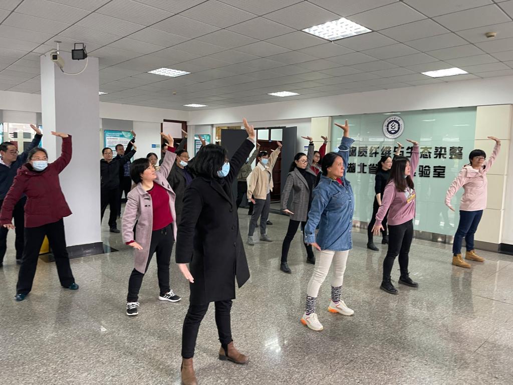 2021年4月1日,校体育部向我院工会全体职工推广八段锦健身操法,通过现场演示、分步教学、完整跟练的方式,为大家提供这套实用方便、行之有效的健身锻炼方案。本次活动的开展得益于校体育部叶东茂教授的亲身经历,因他在疫情期间锻炼八段锦体会到这一中华传统养生文化宝藏确实有强身健体、疏通筋骨之效,才有了号召全校学习八段锦的想法。本次活动也得到了全体职工的大力支持和积极响应,现场气氛浓厚而融洽,有职工反馈跟练两次便发热出汗的现象,大家纷纷称赞这次活动举办有意义。